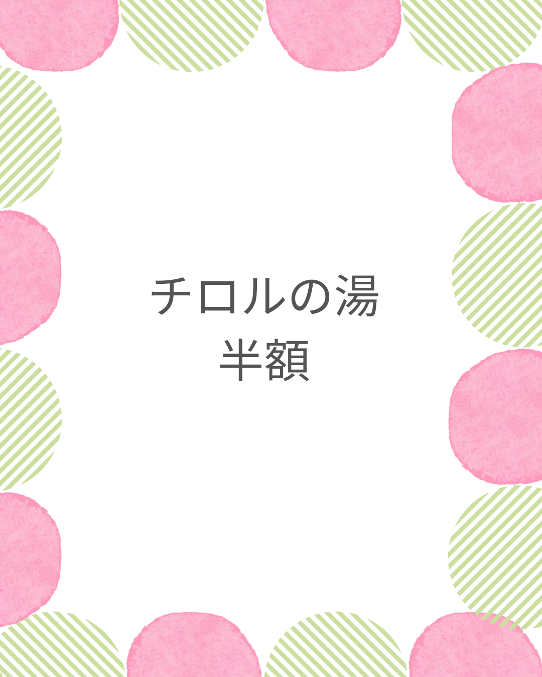 まず最初にやるべきは、当月の半額デーのお知らせを押さえることです。チロルの湯の半額は、毎週何曜日みたいな固定ルールで出ないことがあるので、結局ここが一番の近道なんですよ。