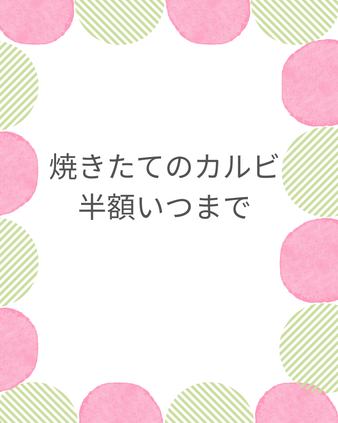 検索だと焼きたてのカルビ半額という言い回しが目立つことがありますが、これは過去の店舗限定や開店記念、SNS投稿の印象が残っているケースが多いです。なので、半額という言葉だけで今も実施中と判断しないのが大事かなと思います。